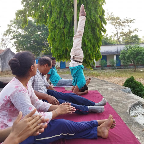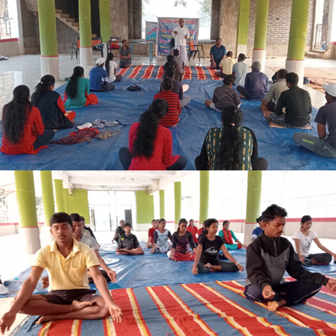 Another yoga session was organized in the morning of every day in seven days Winter Special NSS Camp with the help of a professional yoga trainer. All the students NSS Volunteers of the college and NSS Co-ordinator Shri Tarun Kumar Pruseth joined the practical session.